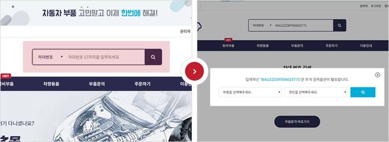 추가검색옵션이 필요한경우, 차종과 엔진형식을 순차적으로