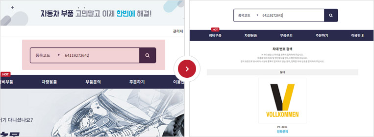 품목코드탭으로 변환하신 후, OE번호를 입력하여 주시면CS CENTER